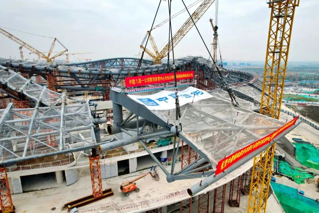10月21日,隨著最后一榀百噸鋼桁架精準(zhǔn)入位,中建八局承建的黃河體育中心專業(yè)足球場(chǎng)項(xiàng)目屋蓋鋼結(jié)構(gòu)成功合龍,標(biāo)志著項(xiàng)目屋蓋鋼結(jié)構(gòu)主桁架施工階段圓滿收官,即將進(jìn)入索、膜結(jié)構(gòu)施工階段.