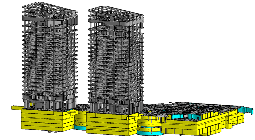 項(xiàng)目主體采用裝配式施工,整體裝配率達(dá)53%,通過提前制定工序穿插計(jì)劃,實(shí)現(xiàn)裝配作業(yè)與現(xiàn)澆作業(yè)流水穿插,120天完成1800余塊,疊合板960余塊,樓承板、20層預(yù)制樓梯精準(zhǔn)安裝,采用BIM三維場(chǎng)布軟件對(duì)工程全生命周期超前模擬,將各專業(yè)模型合并深化,累計(jì)解決各專業(yè)穿插沖突等問題200余項(xiàng)。