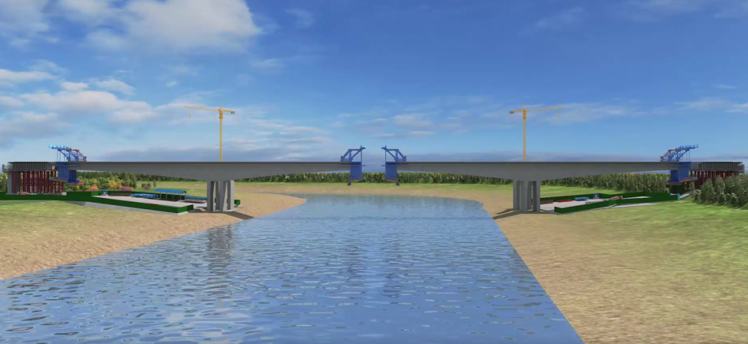 徒駭河特大橋是項(xiàng)目施工的重難點(diǎn),全長(zhǎng)1248.5米,共9聯(lián),單幅橋?qū)?6.5米,主跨長(zhǎng)358.5米,最大跨徑165米,主橋采用單箱單室變截面預(yù)應(yīng)力混凝土連續(xù)梁結(jié)構(gòu)形式,是徒駭河跨徑最大連續(xù)剛構(gòu)現(xiàn)澆梁。