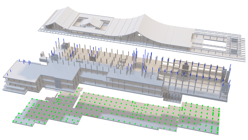 為承載“百年故宮”的重要使命,項目以“穩(wěn)”字為建設(shè)理念,在2.73萬平方米的地基內(nèi)澆筑了1600余根灌注樁,確保建筑地基堅實穩(wěn)固。項目利用有限元分析軟件建立復(fù)合減隔震技術(shù)耦合分析模型,在建筑基礎(chǔ)與上部結(jié)構(gòu)之間巧妙設(shè)置325個大型隔震支座,配合勁性結(jié)構(gòu)、粘滯阻尼器以及抗拉裝置的多重組合,可隔離80%-90%的地震能量,確保文物在安全環(huán)境中妥善保存。