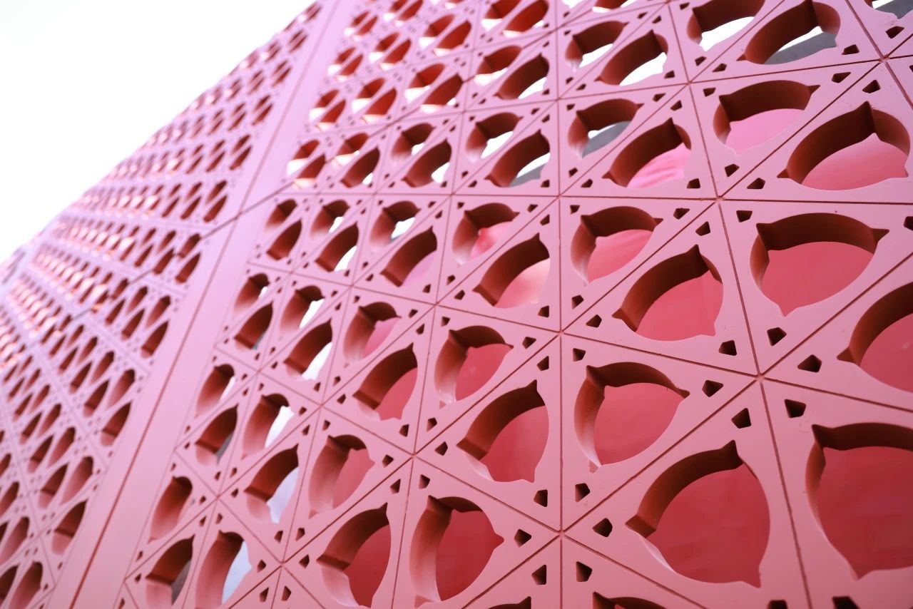為更好展現(xiàn)故宮傳統(tǒng)文化元素,項目采用UHPC超高性能混凝土幕墻、金色鋁合金圓管和鋁板屋面,集高強度、高韌性、高耐久性于一身,形成對UHPC飾面故宮紅防褪色技術(shù),還原金頂中正、紅墻連續(xù)的“故宮味道”。