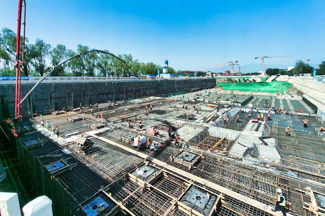 項目踐行“掛圖作戰(zhàn)、適時生產(chǎn)”理念,制定“總、年、月、周”四級計劃,大宗材料進場、大方量砼澆筑等重要工作節(jié)點均提前策劃,落實全員各區(qū)域網(wǎng)格化管理,現(xiàn)場同時作業(yè)人員高峰時超800人,保障結(jié)構(gòu)沖出正負零、主體封頂?shù)汝P(guān)鍵節(jié)點順利完成。