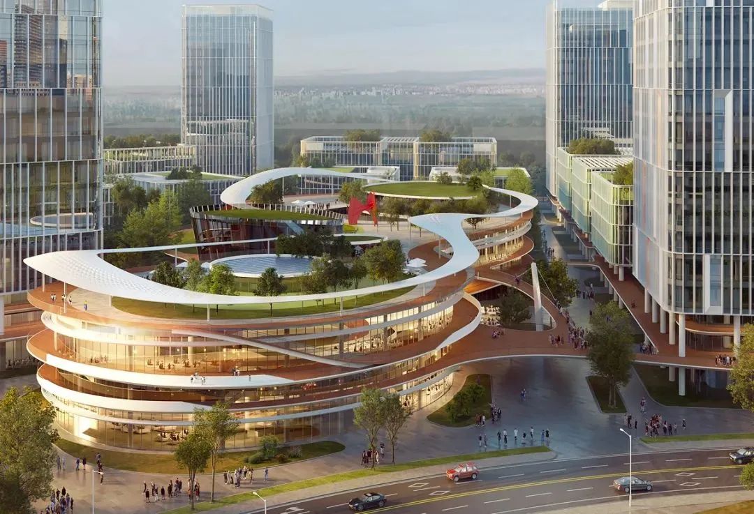 項(xiàng)目作為整體擴(kuò)區(qū)的首發(fā)地塊,以“云端綠谷”為核心設(shè)計(jì)理念,將“云”的形態(tài)融入建筑布局,創(chuàng)意打造立體“共享云臺”,將原本高密度的園區(qū)環(huán)境轉(zhuǎn)變?yōu)楦呋盍Φ牧Ⅲw開放空間,打造高效舒適的花園式研發(fā)辦公環(huán)境。