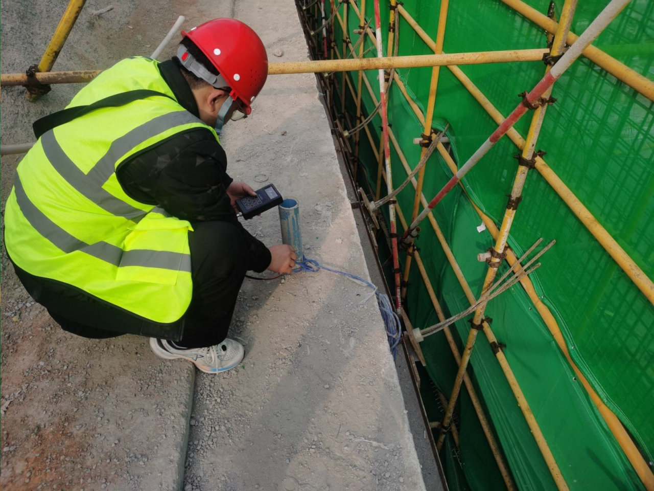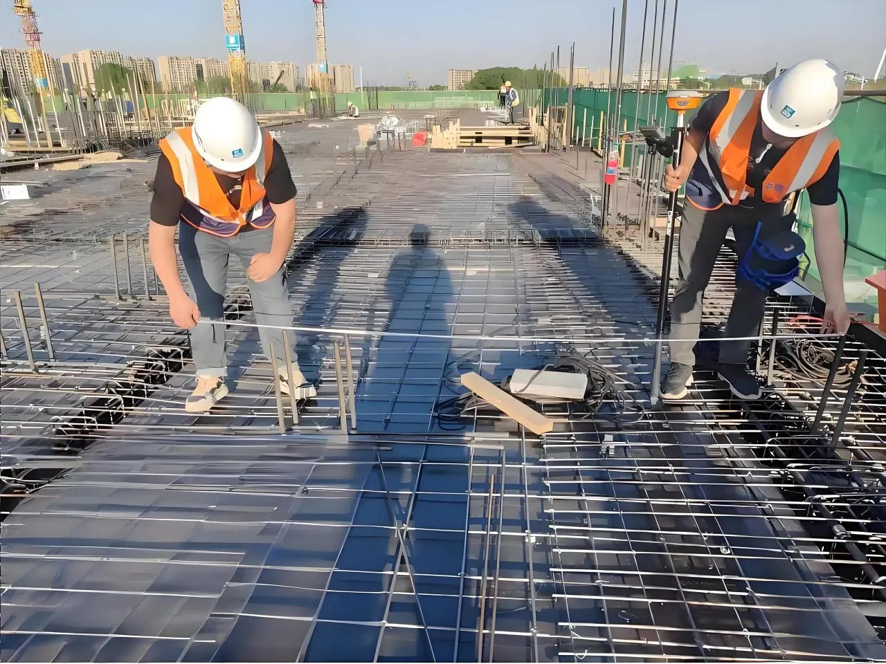 項(xiàng)目在主體結(jié)構(gòu)施工階段,創(chuàng)新采用RTK實(shí)時(shí)動(dòng)態(tài)定位技術(shù),懸挑架所有埋件位置支持一鍵定位,20分鐘可完成3000平方米埋件位置復(fù)核,采用方圓扣龍骨模板體系技術(shù),有效提高模板垂直度、平整度與施工效率。