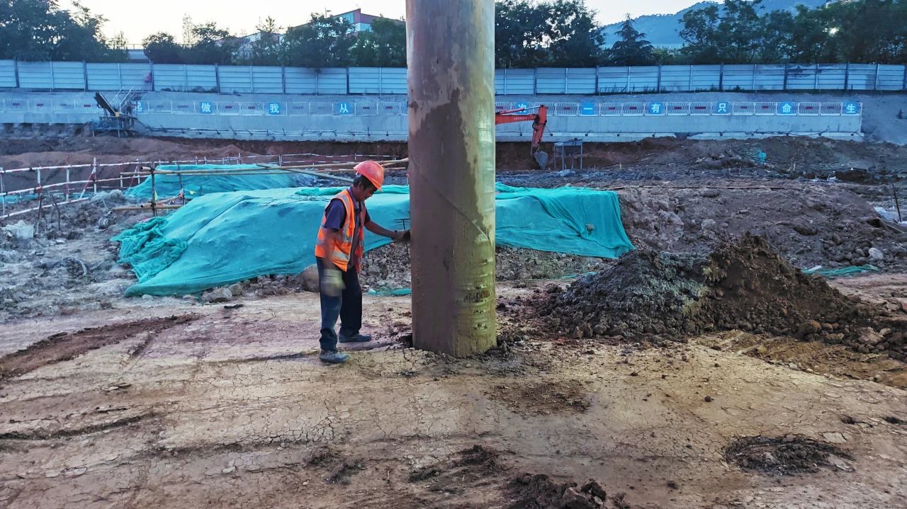 項目地基為淤泥地質(zhì)泥層過厚,導(dǎo)致工程樁無法正常成孔,項目邀請勘察和設(shè)計專家現(xiàn)場指導(dǎo),經(jīng)過深入分析研究決定采用“永久護筒”工藝,永久護筒由高強度鋼板卷制而成,被垂直埋設(shè)至強風化巖層,與樁身混凝土形成整體受力體系,既解決了軟弱地層塌孔難題,又提升了樁基抗側(cè)壓及承載能力,為復(fù)雜地質(zhì)條件下樁基施工提供了技術(shù)保障。
