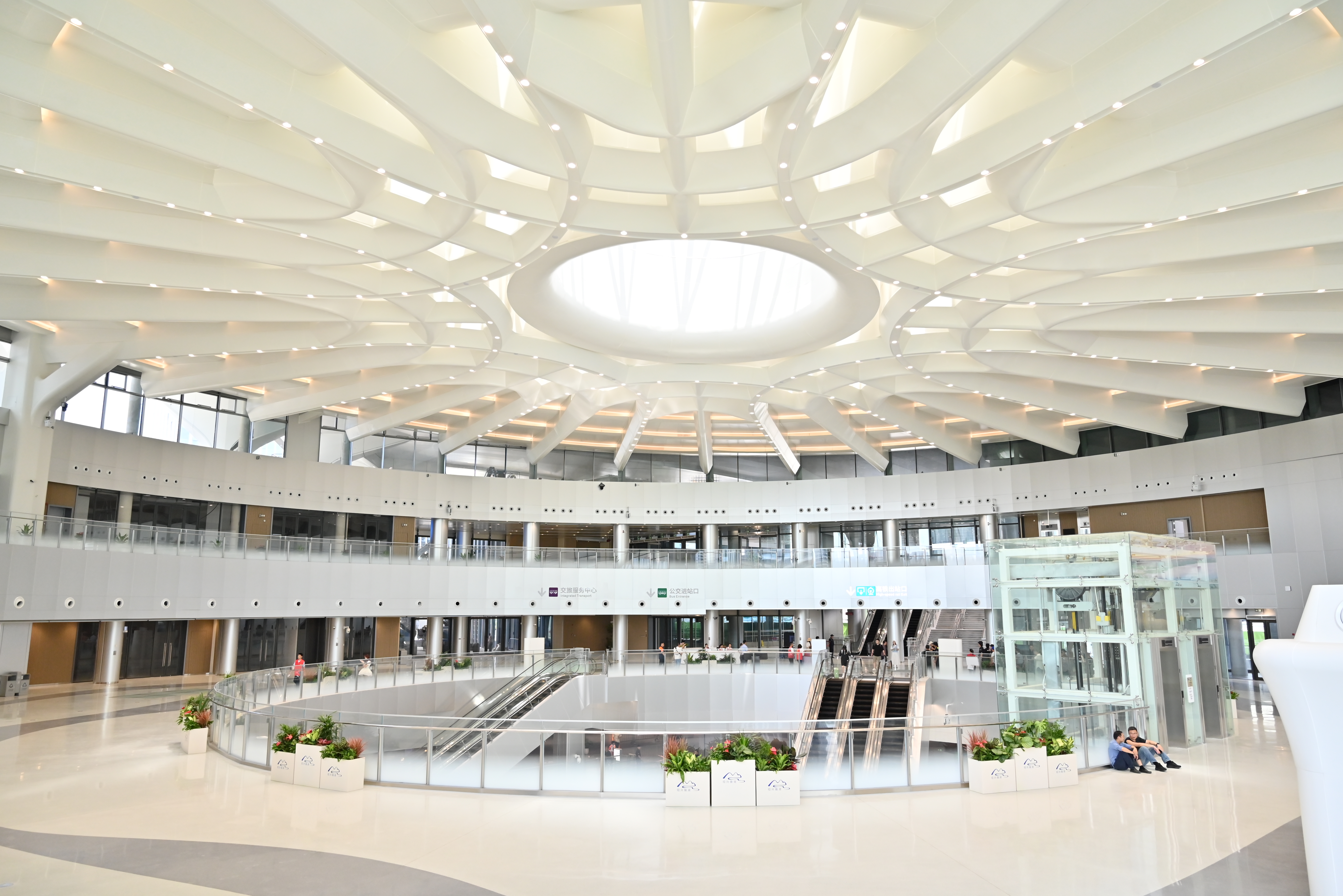 項目開展“百日攻堅”勞動競賽,持續(xù)優(yōu)化協(xié)調組織、激發(fā)建設熱情。高峰時期,現(xiàn)場建設者超1200人,登高車、曲臂車、吊車等大型機械140余輛。40天內完成了6000余噸鋼結構施工,100天內完成6萬平玻璃幕墻、鋁板安裝、2.6萬平精裝修以及2.4萬平室外園林的施工,有力保障交通樞紐區(qū)域如期運營。