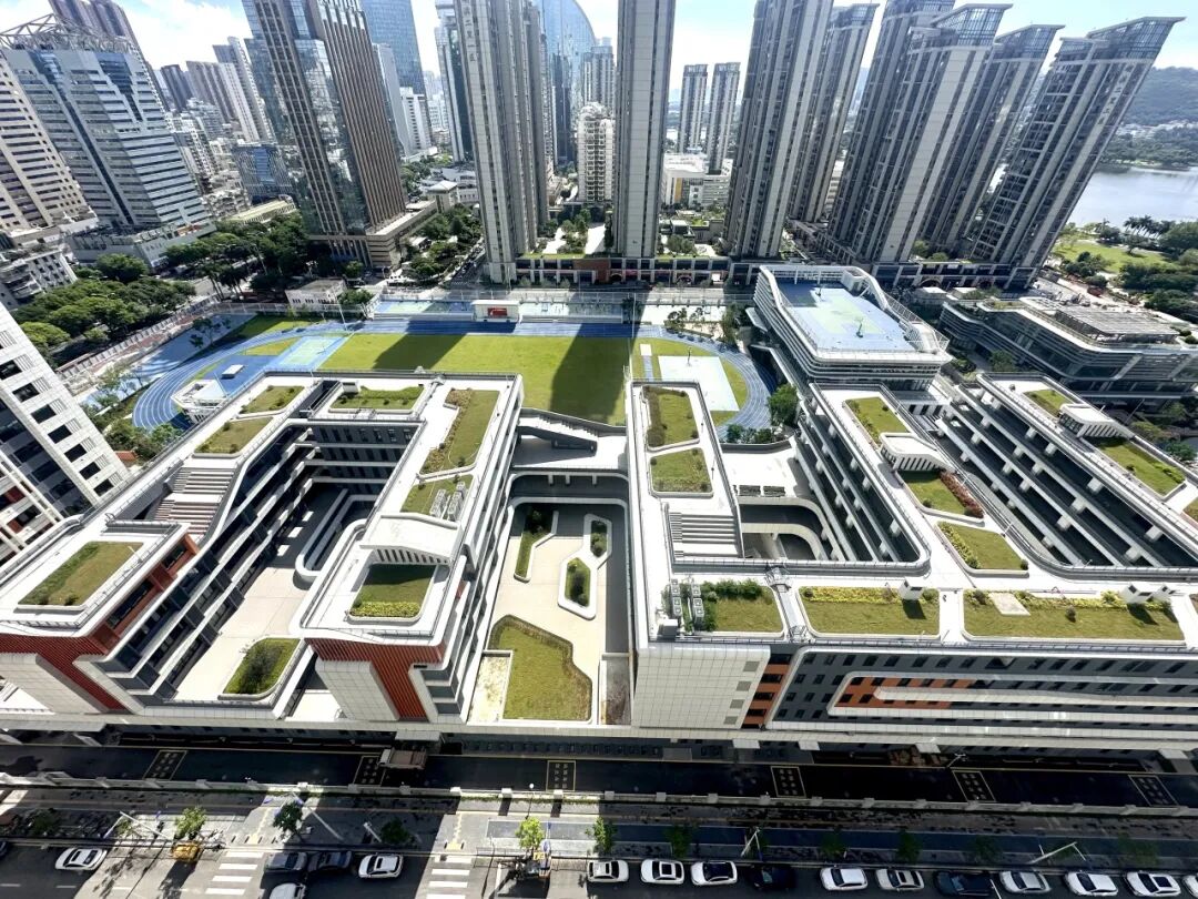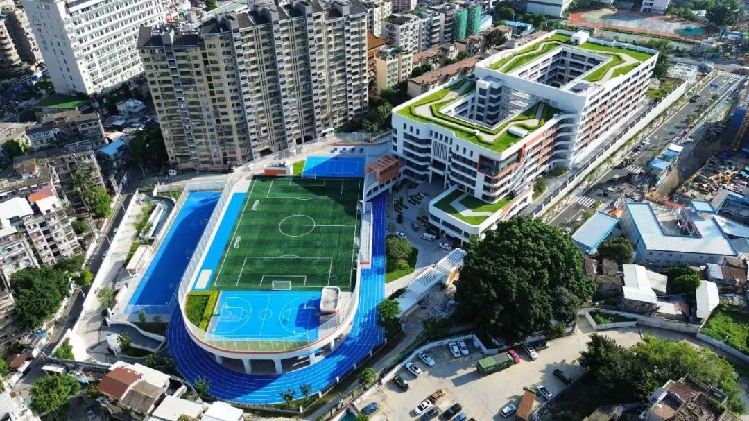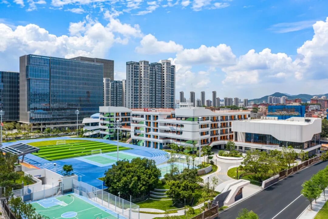 深圳泰寧小學(xué)項目位于深圳市羅湖區(qū),總建筑面積 3.07 萬平方米,設(shè)置 42 個班,共 1800 余個學(xué)位,集教學(xué)教室、教師辦公、圖書館、多功能廳、籃球館等功能于一體。