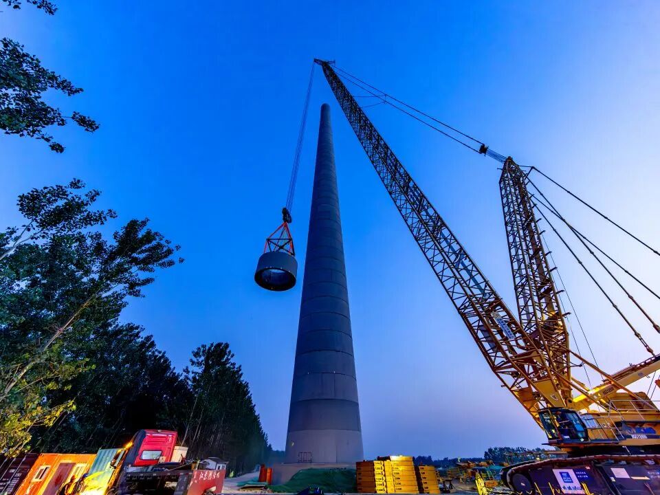 中建八一臨沂市郯城縣TC-1風(fēng)電項目完成國內(nèi)最高混塔風(fēng)機吊裝施工