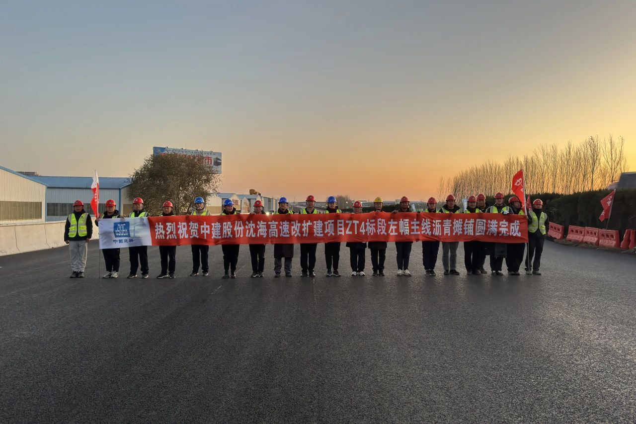 在青島沈海高速公路改擴(kuò)建工程ZT4標(biāo)段施工現(xiàn)場,隨著最后一段瀝青混合料攤鋪完成,項(xiàng)目完成左幅主線瀝青攤鋪,正全力沖刺年底左幅通車目標(biāo)。