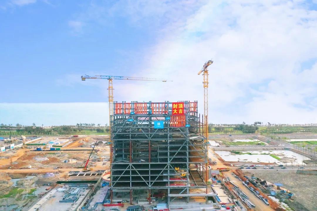 3月31日,海南江東·國際能源中心項目完成鋼結(jié)構(gòu)封頂,朝著完美履約目標(biāo)邁進。