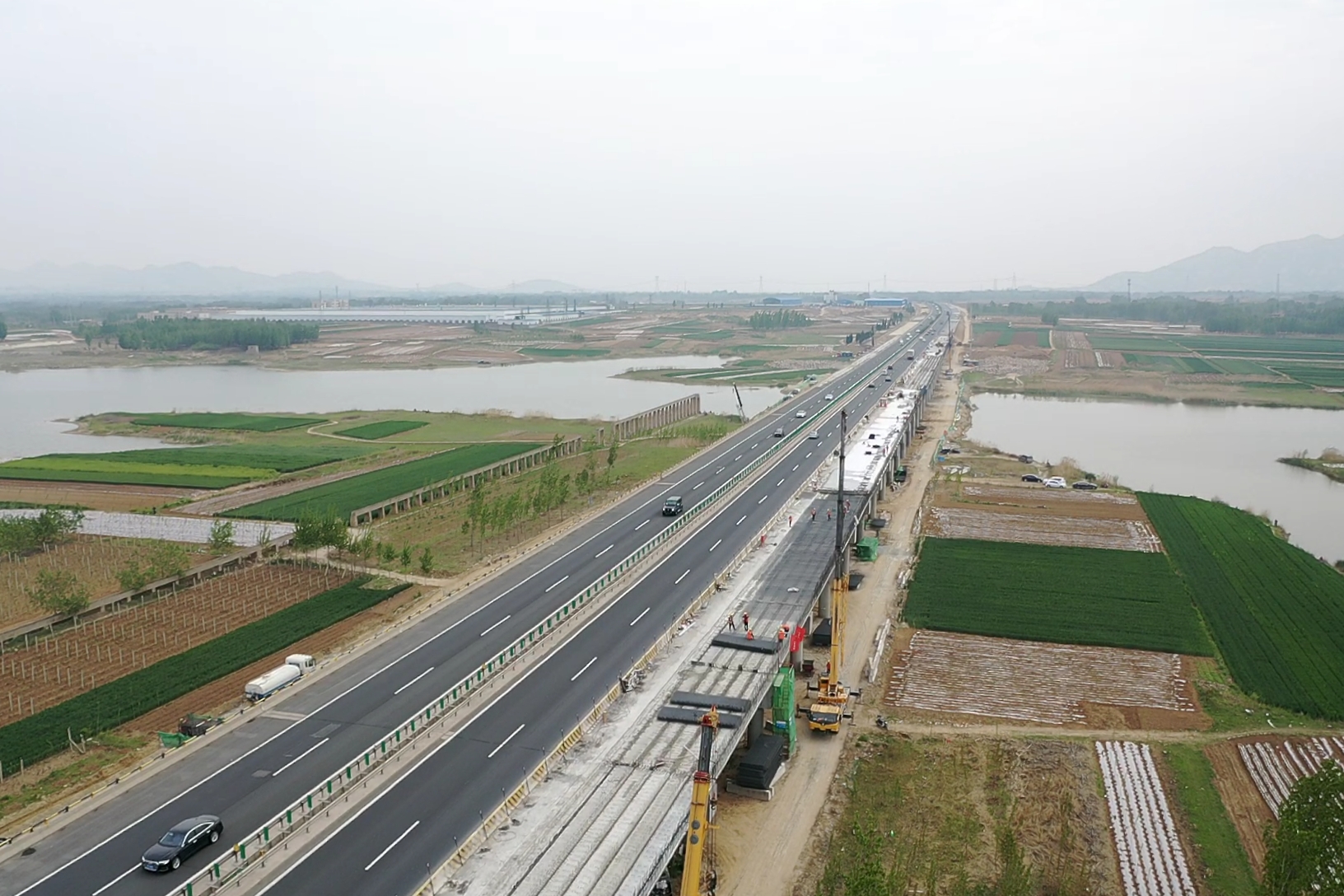 京臺高速公路泰安至棗莊段改擴(kuò)建工程全線首座特大橋一階段梁板架設(shè)完成