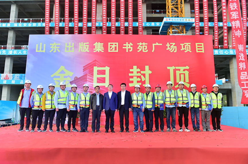 山東出版集團(tuán)圖書展示樓項(xiàng)目喜迎封頂