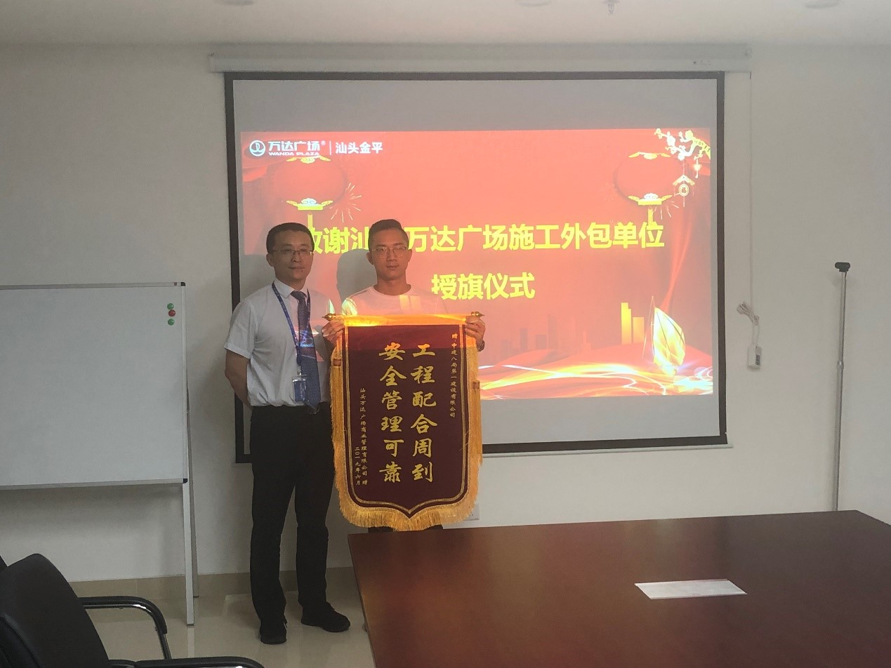 汕頭萬達(dá)廣場(chǎng)項(xiàng)目部榮獲業(yè)主錦旗表彰