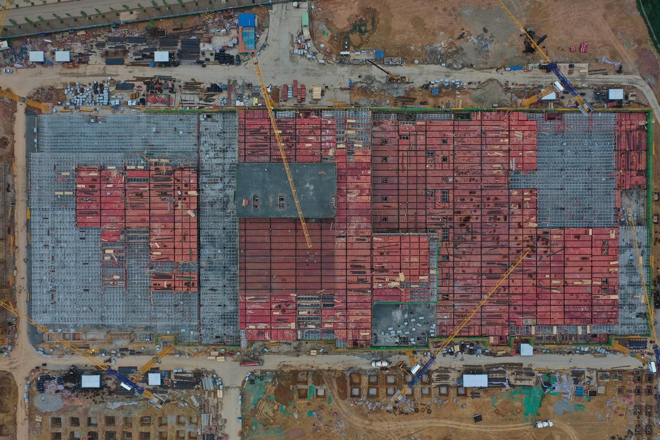 四川長(zhǎng)虹項(xiàng)目G01多媒體廠房首段順利封頂