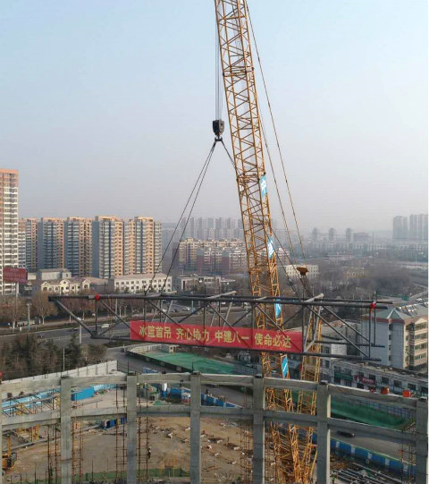 公司承建萬(wàn)達(dá)冰籃球館項(xiàng)目順利完成新年“第一吊”