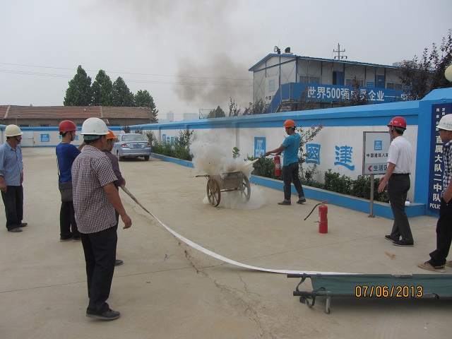 為增強(qiáng)施工現(xiàn)場全體人員的消防意識,搞好消防工作,確?,F(xiàn)場人員及財產(chǎn)安全,省會文化藝術(shù)中心配套高層ⅠⅢ標(biāo)段項目部于2013年6月7日組織進(jìn)行了消防應(yīng)急演練活動。