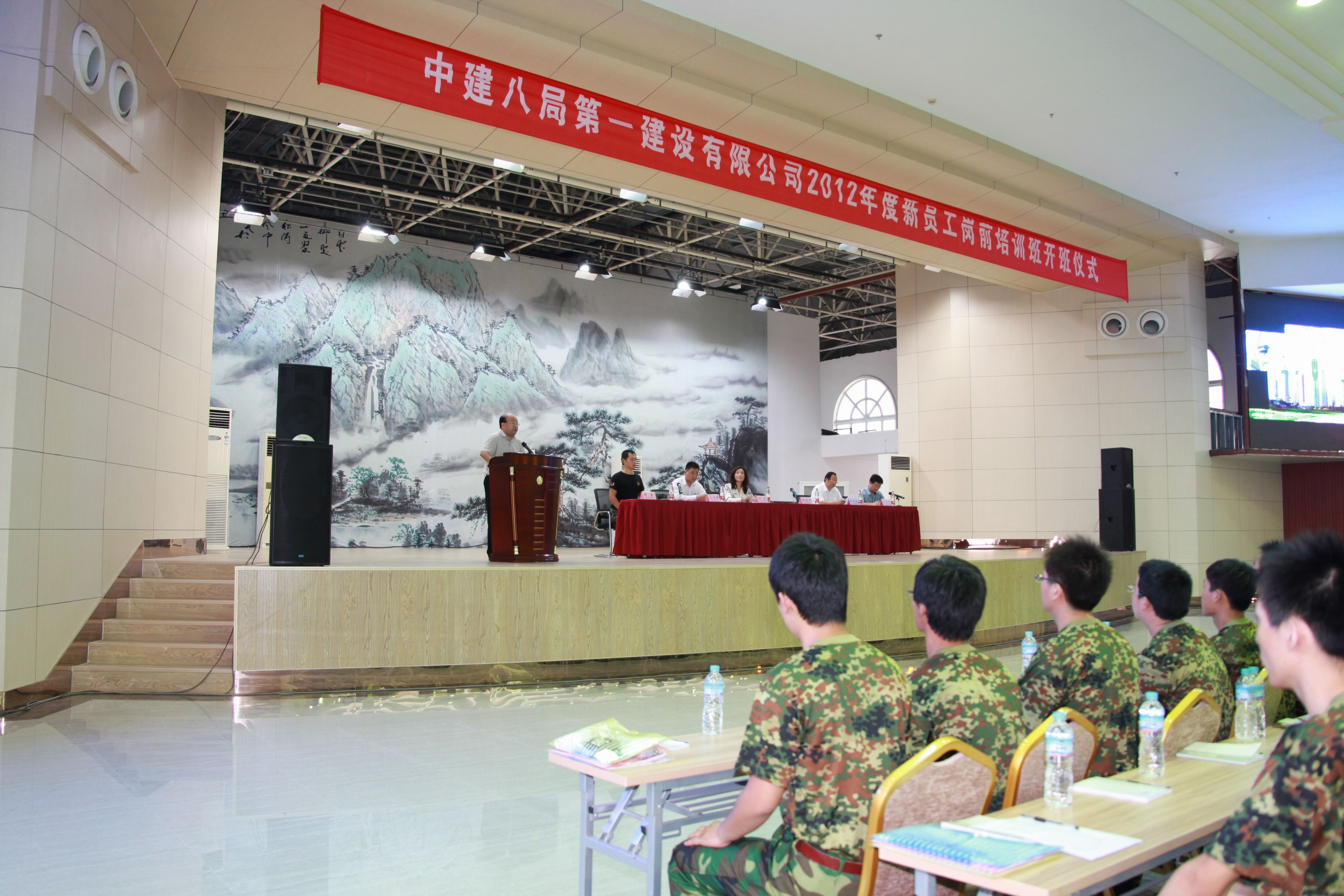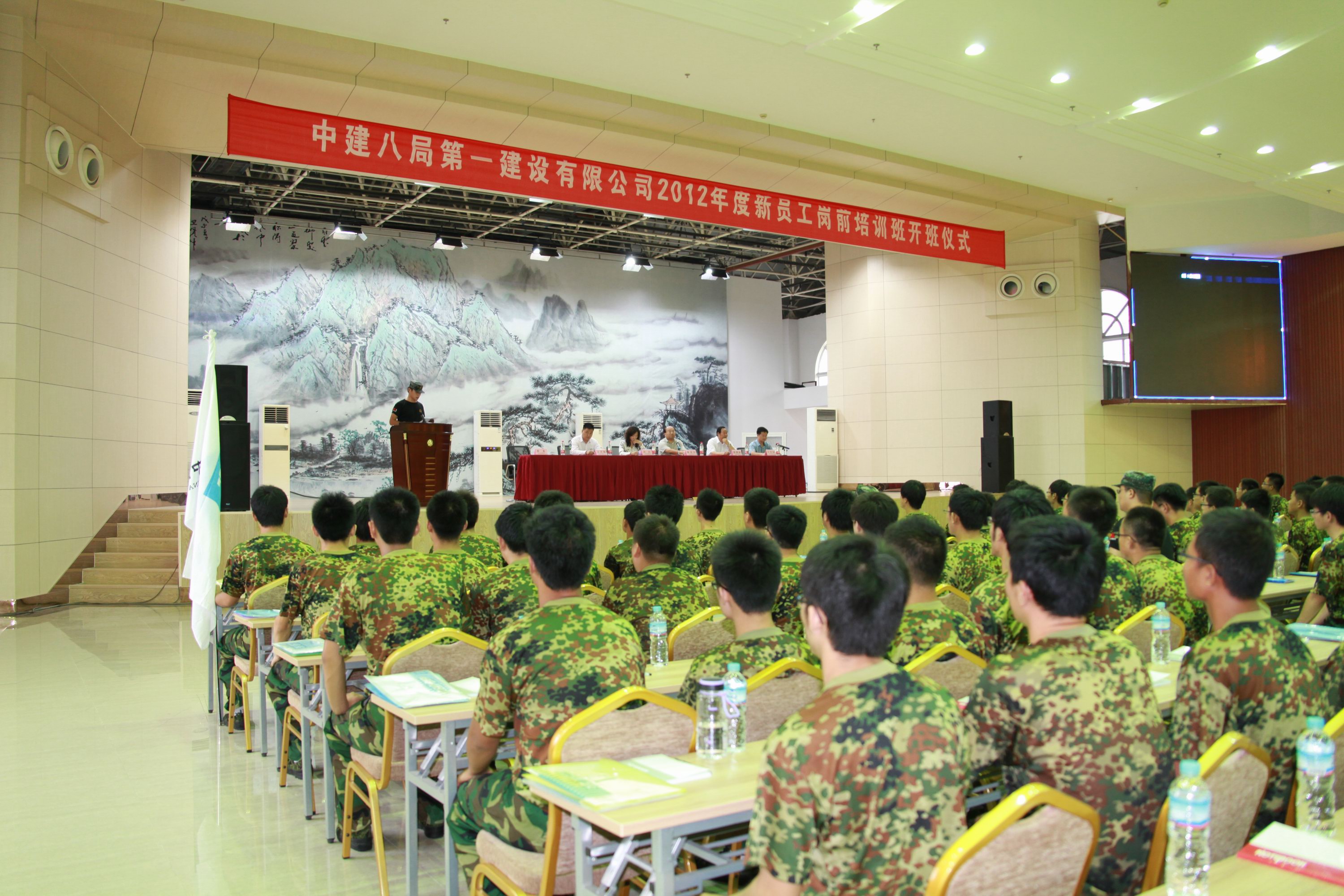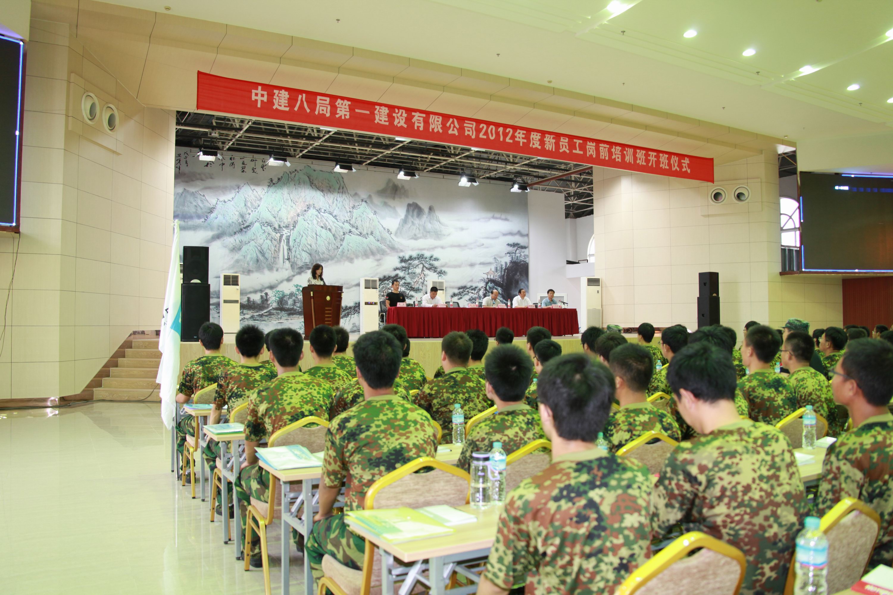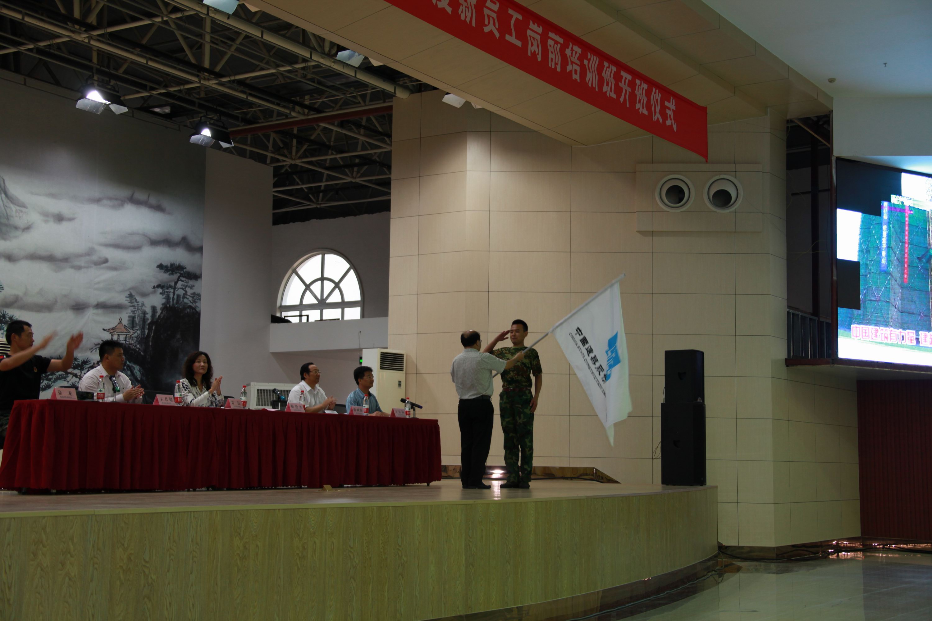 儀式上,徐董事長發(fā)表了熱情洋溢的致辭,徐董事長對新員工提出了殷切的期望。在隨后的儀式中,徐董事長為新員工授予了代表中建精神的中建司旗,司旗在隊員手中依次傳遞,代表中建精神遍布四方。紀(jì)委書記薛樹海宣讀了《新員工崗前培訓(xùn)班培訓(xùn)內(nèi)容安排說明》,在之后的新員工代表和教官代表發(fā)言中,新員工表示一定不辜負(fù)公司領(lǐng)導(dǎo)的期望,在軍訓(xùn)中努力培養(yǎng)自己的鐵軍作風(fēng),盡快融入一公司這個鐵軍團(tuán)隊;教官代表則表達(dá)了對做好新員工軍訓(xùn)的信心和決心。隨后黨委書記許紅發(fā)表總結(jié)講話,許書記對新員工提出了明確的要求和期望。她勉勵新員工要擺正心態(tài)、適應(yīng)角色轉(zhuǎn)換;集中精力,認(rèn)真學(xué)習(xí)思考;敢于吃苦,積極參加訓(xùn)練;加強(qiáng)溝通,增進(jìn)團(tuán)結(jié)交流。最后儀式在大家共唱《中建之歌》中圓滿結(jié)束。