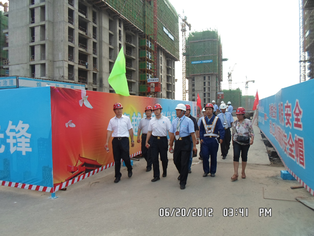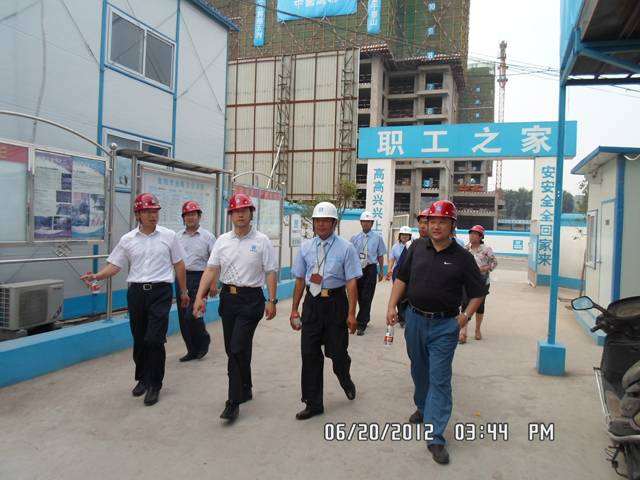 2012年6月20日,中建總公司苑丁處長一行對西客站安置三區(qū)項目CI創(chuàng)優(yōu)工作進行驗收。檢查組先是對現(xiàn)場進行了檢查,隨后對生活區(qū)、辦公區(qū)進行了檢查,最后進行了工作匯報和講評。