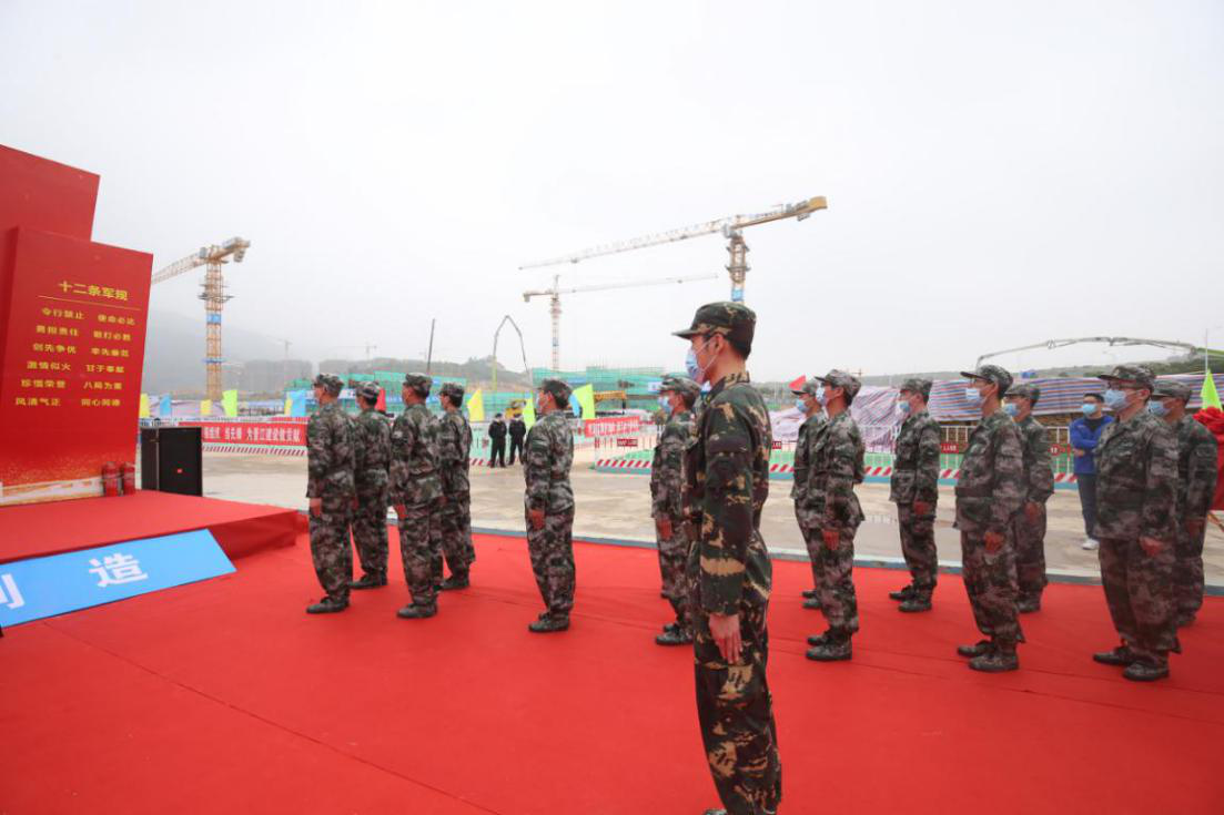頑強拼搏、知難而上、敢于創(chuàng)新、勇于爭先,項目負責人劉成剛帶領(lǐng)工友宣誓,發(fā)揚“鐵軍”精神,誓要圓滿完成建設任務。