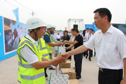 工人是一線建造的先鋒,各參會領(lǐng)導(dǎo)表達(dá)了對工友辛勤勞動、勇于奉獻(xiàn)精神的感謝,并為工友發(fā)放慰問物資。