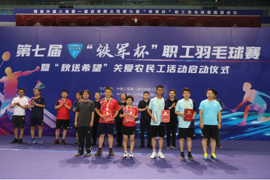 經(jīng)過激烈的角逐,最終華南公司、八一設(shè)計(jì)院、濟(jì)南公司代表隊(duì)分獲團(tuán)體賽冠、亞、季軍;濟(jì)南公司付浩城、八一設(shè)計(jì)院丁峰、華南公司盧瑞東斬獲男單前三名;濟(jì)南公司武晉輝、總部機(jī)關(guān)何燦、華南公司賈海平獲得女單前三名;華南公司劉樹強(qiáng)/李金華、華南公司何盛/陳冠昌、華北公司鄧禎旸/宋培源分獲男雙冠、亞、季軍;濟(jì)南公司付浩城/武晉輝、總部機(jī)關(guān)潘信/楊如夢、華南公司陳冠昌/李慧慧分獲混雙冠、亞、季軍;基礎(chǔ)設(shè)施公司王林海/王楊、中原公司王蒙/張航、華南公司白高武/胡前寬分獲預(yù)備隊(duì)男雙冠、亞、季軍;濟(jì)南公司張超/朱萍、華南公司莫顏飛/刁濟(jì)、基礎(chǔ)設(shè)施公司許利彤/王媛分獲預(yù)備隊(duì)混雙冠、亞、季軍;同時,經(jīng)組委會評審一致通過,青島公司和基礎(chǔ)設(shè)施公司在比賽前期能做到認(rèn)真選拔,在比賽過程中也能做到精心策劃,展現(xiàn)出了“八一鐵軍”的青春風(fēng)采與責(zé)任擔(dān)當(dāng),獲得公司第七屆“鐵軍杯”羽毛球賽“最佳組織獎”。