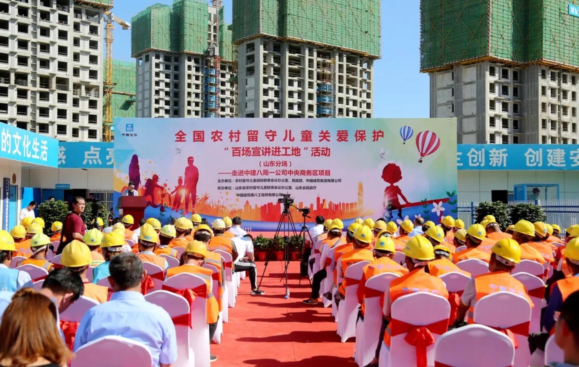 2018年9月9日,由農(nóng)村留守兒童部際聯(lián)席會議辦公室、民政部、中國建筑集團有限公司主辦,山東省民政廳、中建八局承辦的全國農(nóng)村留守兒童關(guān)愛保護“百場宣講進工地”活動(山東分場)走進一公司濟南中央商務(wù)區(qū)項目。