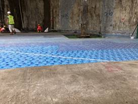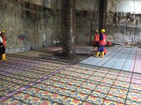 土模法施工技術(shù):利用開挖后的土體作為天然模板,澆筑墊層并鋪設(shè)隔離層后綁扎鋼筋、澆筑結(jié)構(gòu)樓板混凝土。通過土模法應(yīng)用,節(jié)省了樓板模板的投入,相比常規(guī)模板施工,節(jié)約工期約10天。