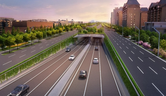 廣渠路東延(怡樂(lè)西路-東六環(huán)路) 全長(zhǎng)7.664km,是連接北京中心城區(qū)與通州城市副中心行政辦公區(qū)的重要通道。廣渠路東延道路規(guī)劃為城市主干路,雙向六車道,按地面、地下兩套系統(tǒng)設(shè)置,地面道路設(shè)計(jì)速度為60km/h,地下道路設(shè)計(jì)速度80km/h,配套建設(shè)綜合管廊及雨污分流排水系統(tǒng)。