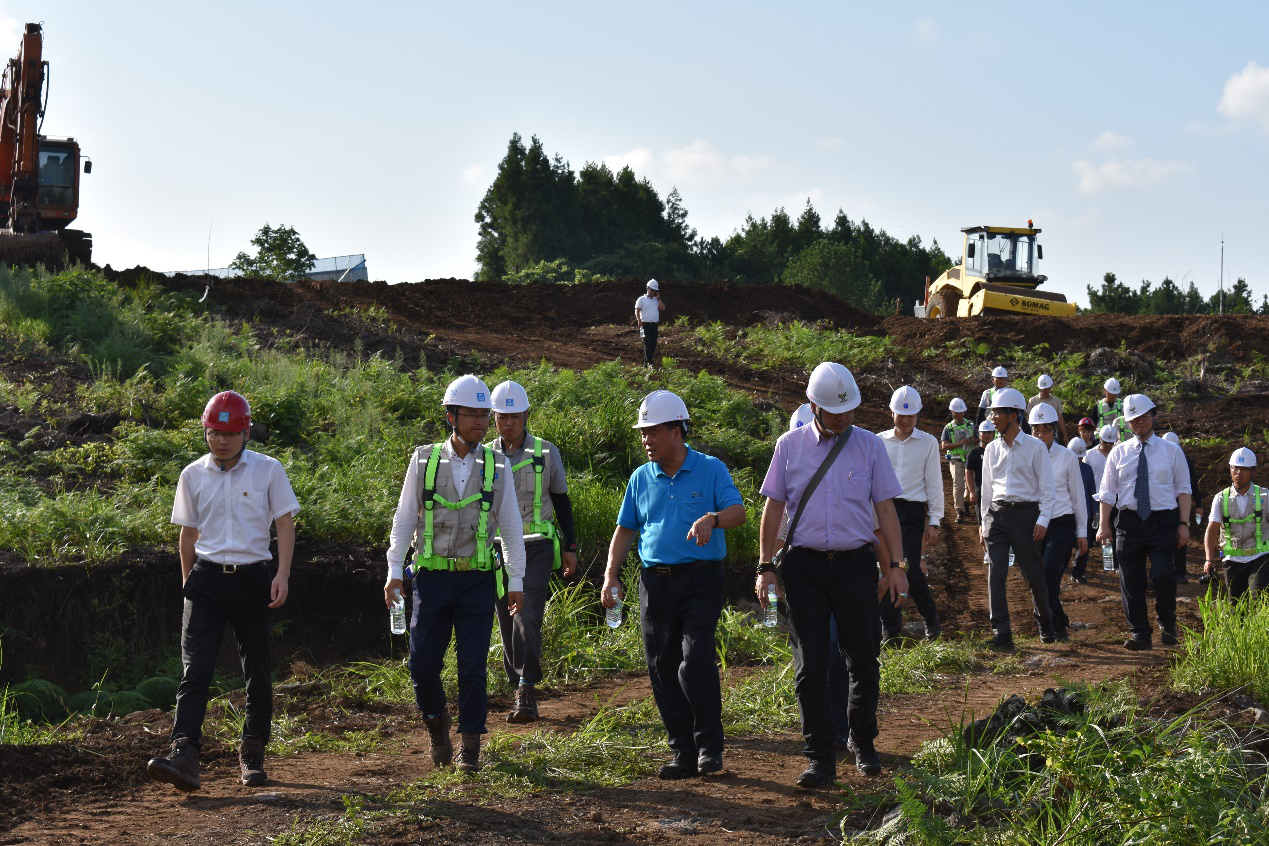 The day before the ceremony, He Jianliang and his party of Yihe Real Estate Group, accompanied by Gao Jigui and Project Manager Zhao Xiaodong, visited the Project for an inspection to learn about the preliminary preparation for work commencement of the Project. He Jianliang said that the Project has changed a lot in only one and a half months, and he was very relieved and secure as the Group could cooperate with CSCEC which was the world’s largest construction company.