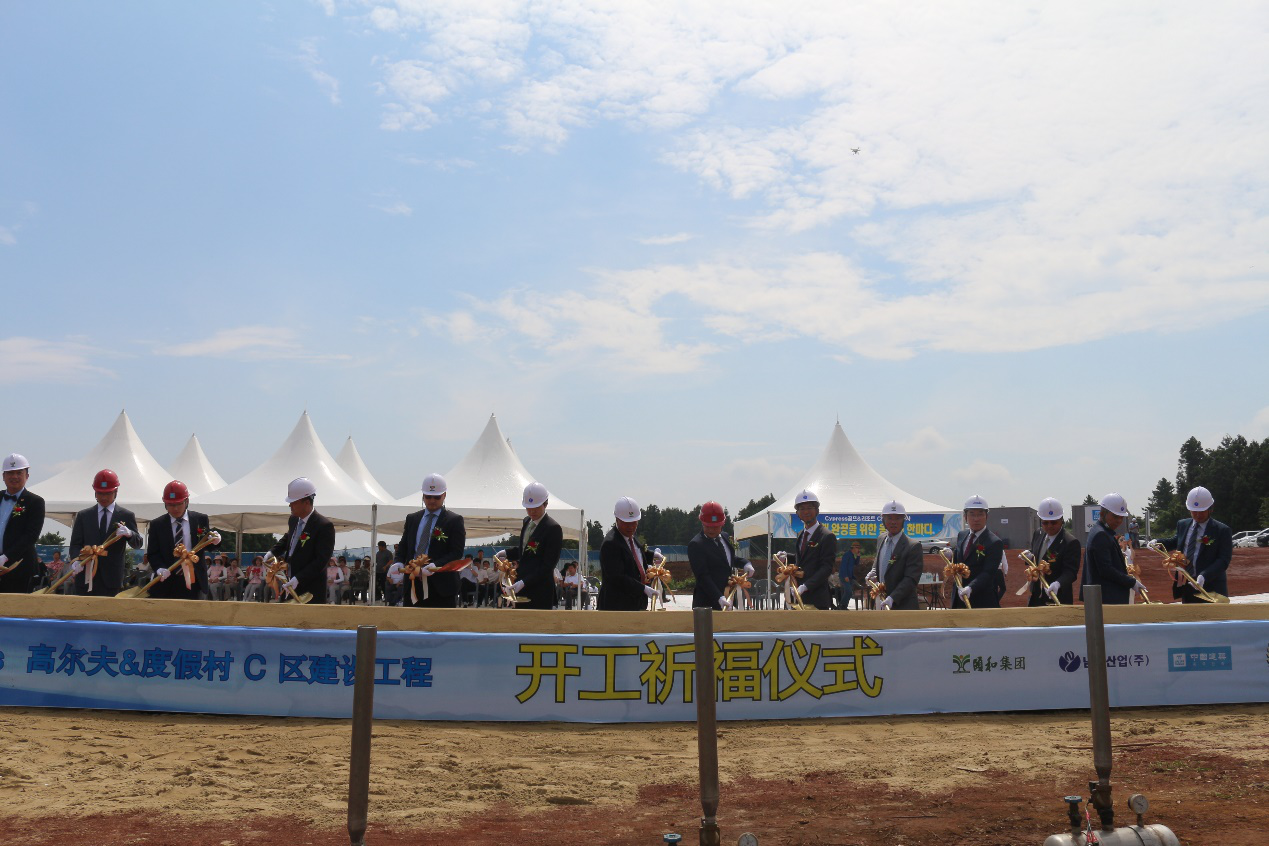 At 9:30 a.m. local time on August 18, the commencement & blessing ceremony of Jeju Yihe Project of South Korea was held successfully. He Jianliang, Chairman of Yihe Real Estate Group; He Jianfeng, Chairman Assistant and General Manager of Overseas Investment Department of Yihe Real Estate Group; Nan Xiyu, Chairman of Nam Rong Group; Wu Jianguo, General Manager of Overseas Business Division of China Construction Eighth Engineering Division Corp. Ltd.; Gao Jigui, Secretary of Overseas Business Division of the Company; and relevant responsible persons of Yihe Real Estate Group and Nam Rong Group took part in the activity.